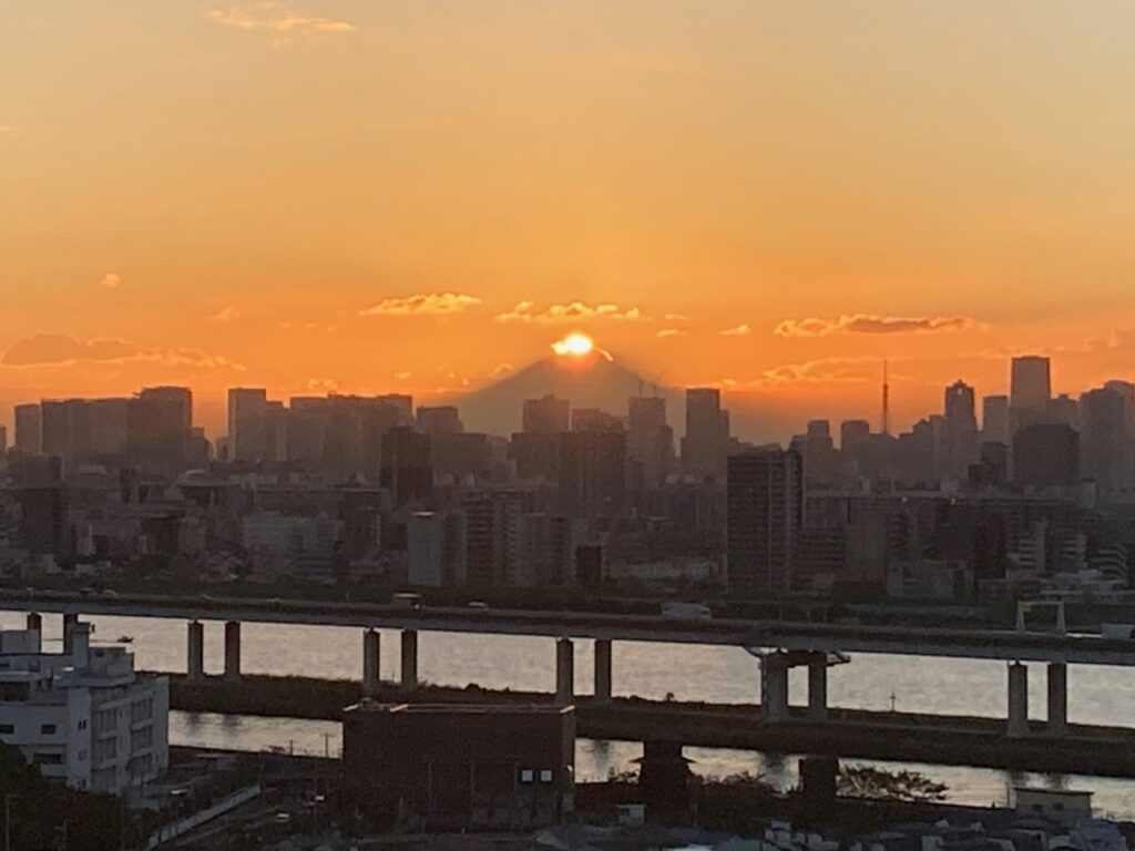 ちょっと雲がかかっているんですが、船堀から見えた「ダイヤモンド富士」一年で二日しかない貴重な一瞬でした。